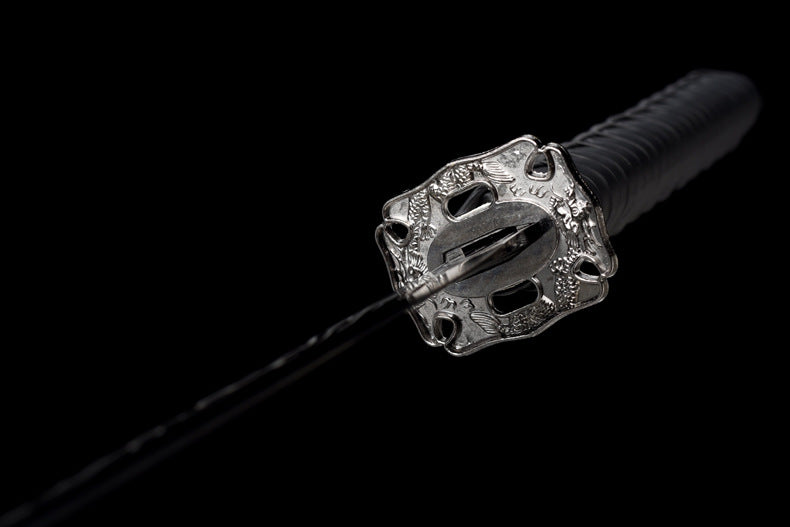 "Black Flame" Neo-Chinese Samurai Sword, High Manganese Steel Blade with Alloy Fittings (100cm Overall), Non-Sharpened for Display and Collection