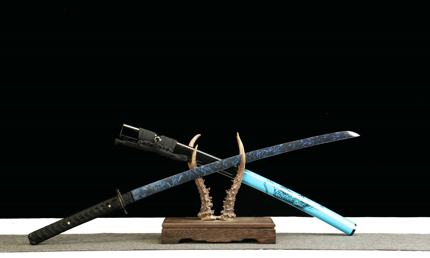 "Boya Dusk Fang" Katana - 28.3" Twilight-Forged 1045 Carbon Steel | Oxidation-Resistant Zinc Alloy | Weathered Blue Bark Saya | 40.5" Predator Collection,Battle-ready katana
