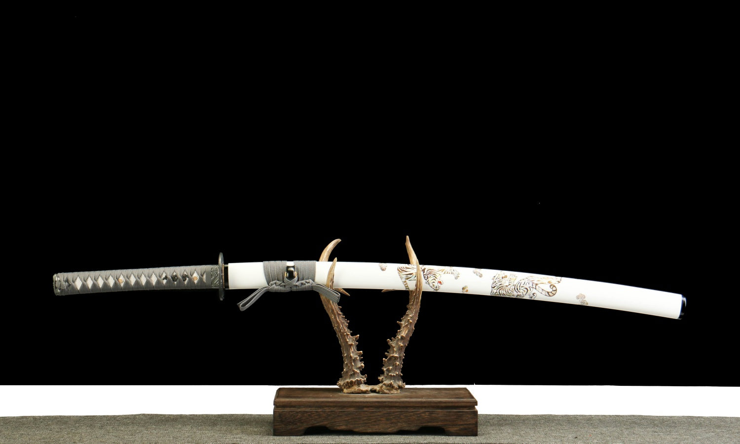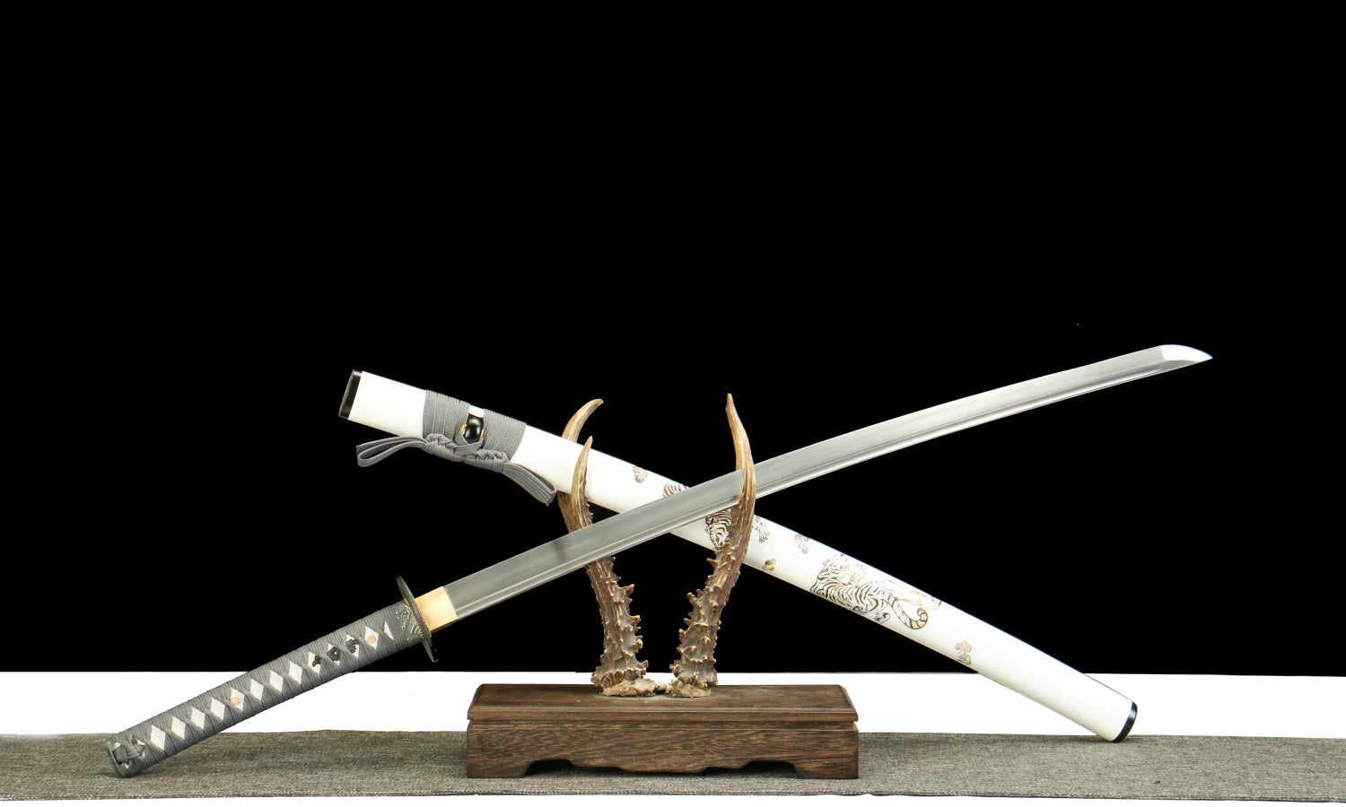 "Byakko Roaring Tiger" Katana - 28.3" Divine Beast 1065 Steel | Frosted Zinc Fittings | Winter Blue Bark Saya | Four Guardians Collection,Battle-ready katana
