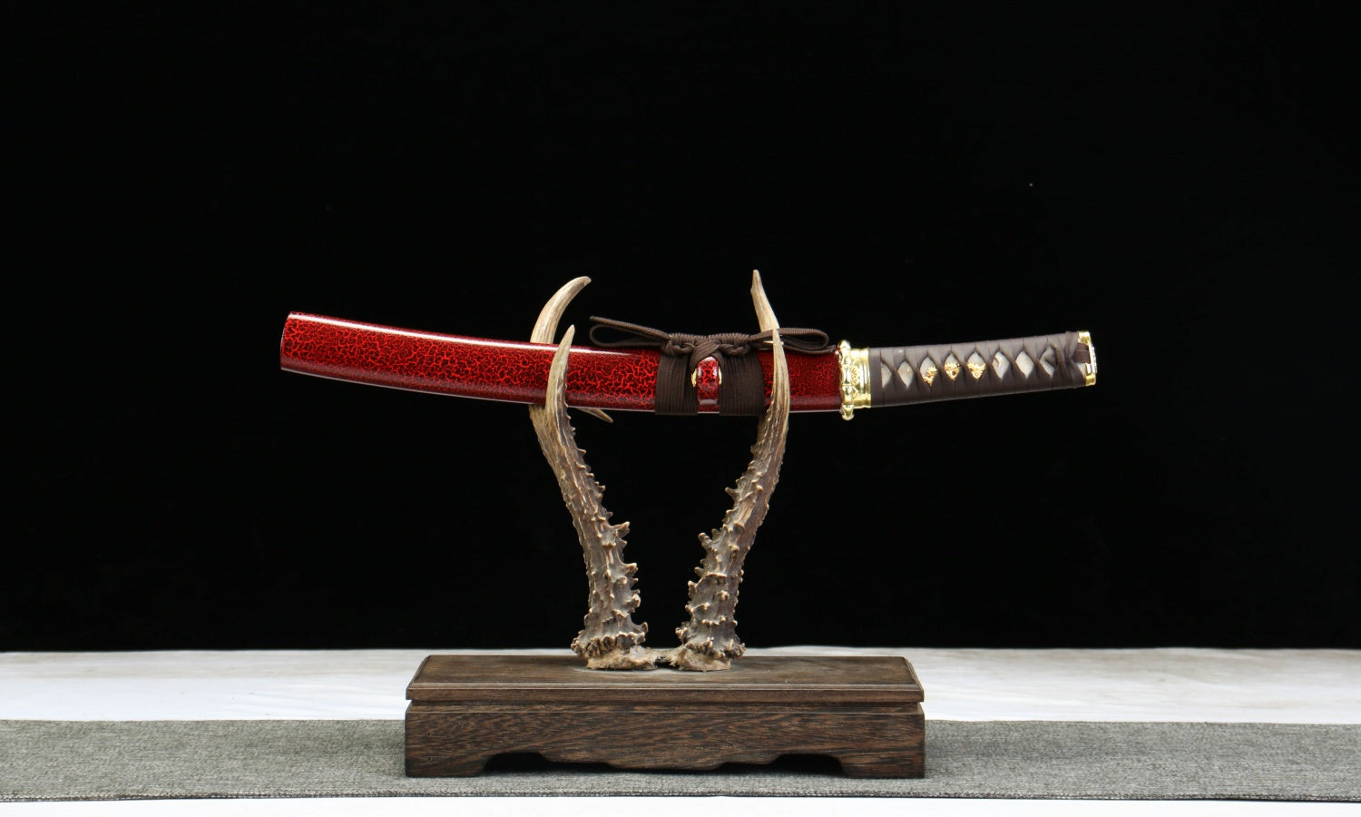 "Celestial Flame" 1065 Steel Wakizashi - 12.6" Oil-Tempered Blade | Zinc Alloy Fittings & Cedar Saya | No.310Hand-forged katana