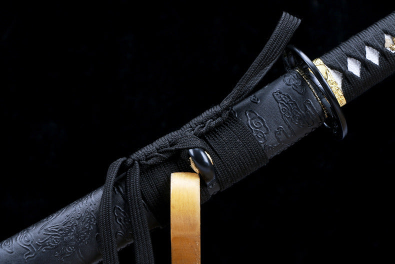 Phoenix Katana with Unique “Tiger Tail” Blood Groove - Ironwood Core, Phoenix Leather Wrap, Openwork Iron Fittings, Display-Grade Practice Sword