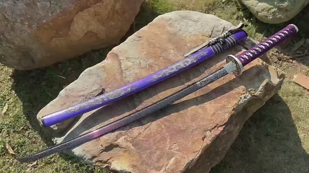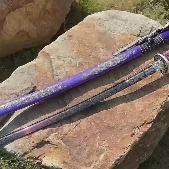 Purple Dragon Movie Katana, Forged Medium Carbon Steel, 71.3cm Blade with Lacquered Wood Saya, 1.3kg Collectible Display Piece