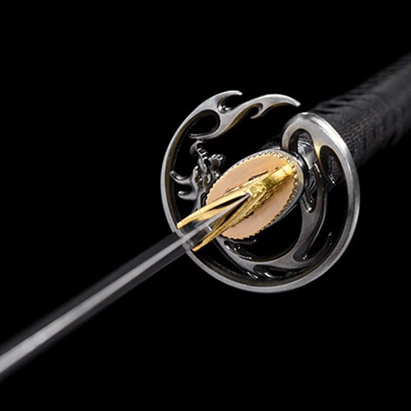 Dragon You Onikiri Movie Katana, Forged from High Manganese Steel, 70cm Blade with 0.75cm Thickness, Lacquered Wood Saya, 1.3kg Net Weight